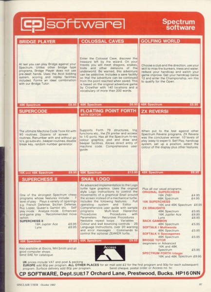 | Adventure 1 | Abersoft | Adventure: Text | 1982 |