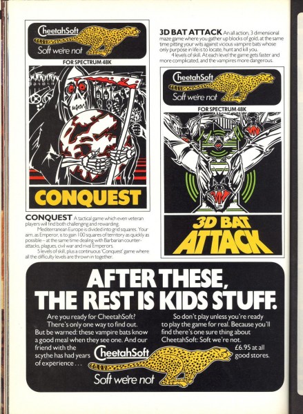 | 3D Bat Attack | Cheetahsoft Ltd | Arcade: Maze | 1984 |