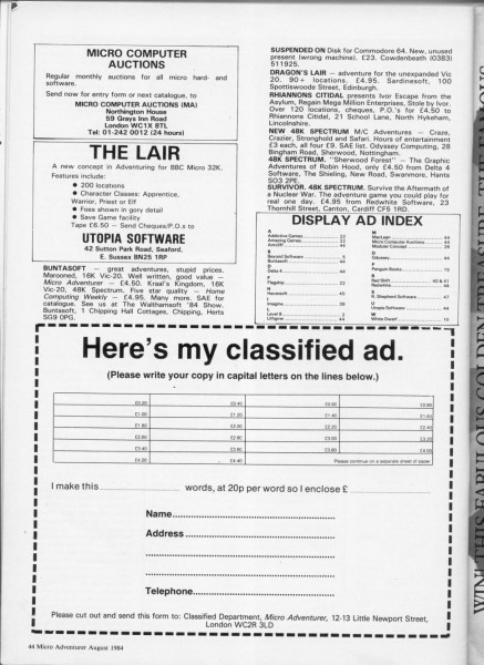 | Sherwood Forest | Delta 4 Software | Adventure: Text | 1984 |