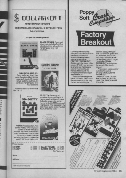 | Paddy | Dollarsoft | Arcade: Action | 1984 |