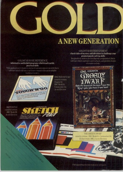 | The Greedy Dwarf | Goldstar | Adventure: Text | 1984 |