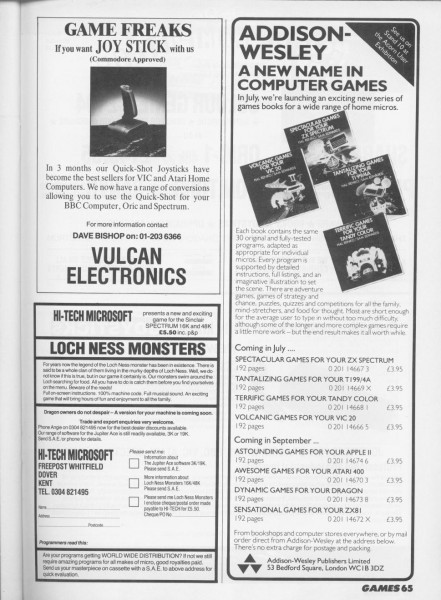 | Loch Ness Monster | Hi-Tech Microsoft | Arcade: Action | 1983 |