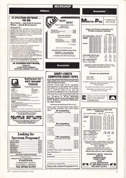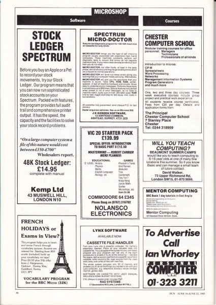 | Mentor | J K Gosden Software | Programming: BASIC | 1983 |