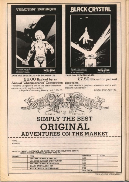 | Black Crystal | Carnell Software Ltd | Adventure: RPG | 1982 |
