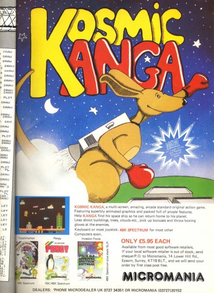 | Kosmic Kanga | Micromania | Arcade: Action | 1984 |