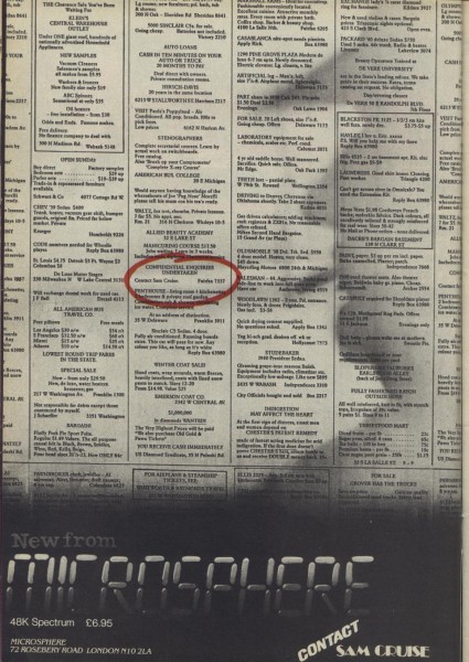 | Contact Sam Cruise | Microsphere | Adventure: Graphic | 1986 |