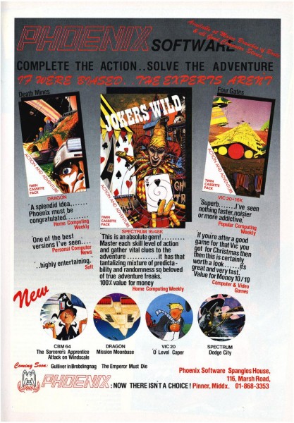 | Jokers Wild | Phoenix Software Ltd | Arcade: Adventure | 1984 |
