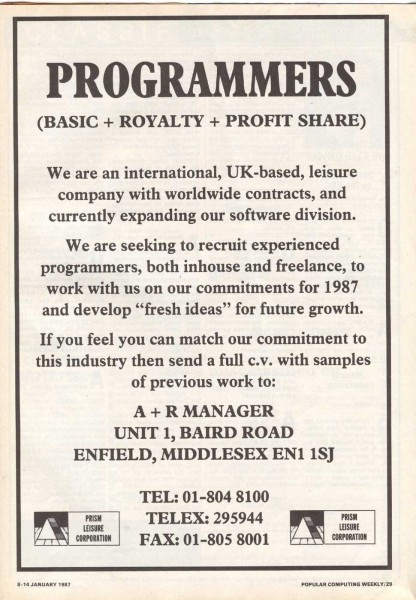 | Endurance Games (UK) | Prism Leisure Corporation PLC | Prism Leisure Corporation PLC | Unknown |