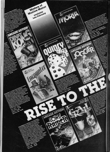 | Grail | Severn Software | Adventure: Dungeon Crawl | 1983 |