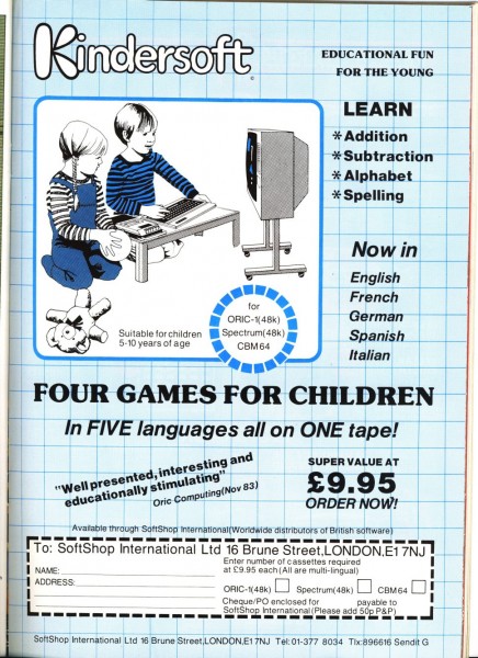 | Four Games for Children | SoftShop International | Educational | 1984 |