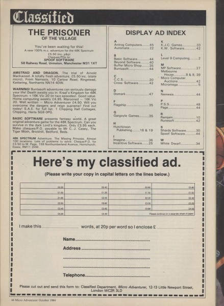 | The Prisoner of the Village | Spoof Software | Adventure: Text | 1984 |