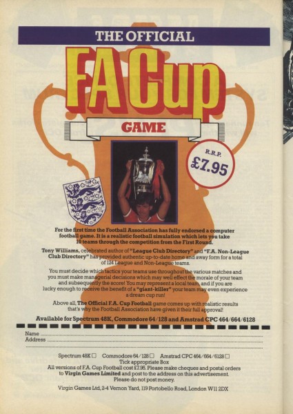 | F.A. Cup Football | Virgin Games Ltd | Sport: Management | 1986 |