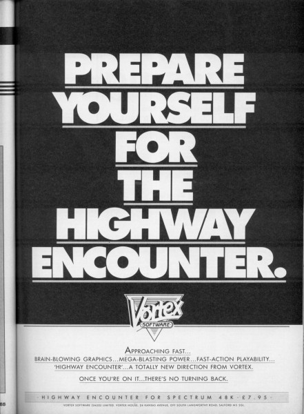 | Highway Encounter | Vortex Software | Arcade: Shoot-em-up | 1985 |