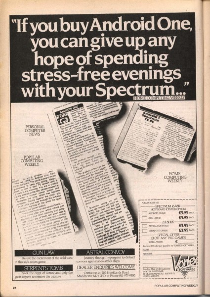 | Android One | Vortex Software | Arcade: Shoot-em-up | 1983 |