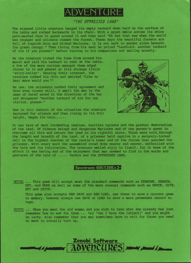 | Zenobi Software - Screen dump | Loading screen | https://www.rzxarchive.co.uk/o/oppressedland.rzx | RZX Archive |