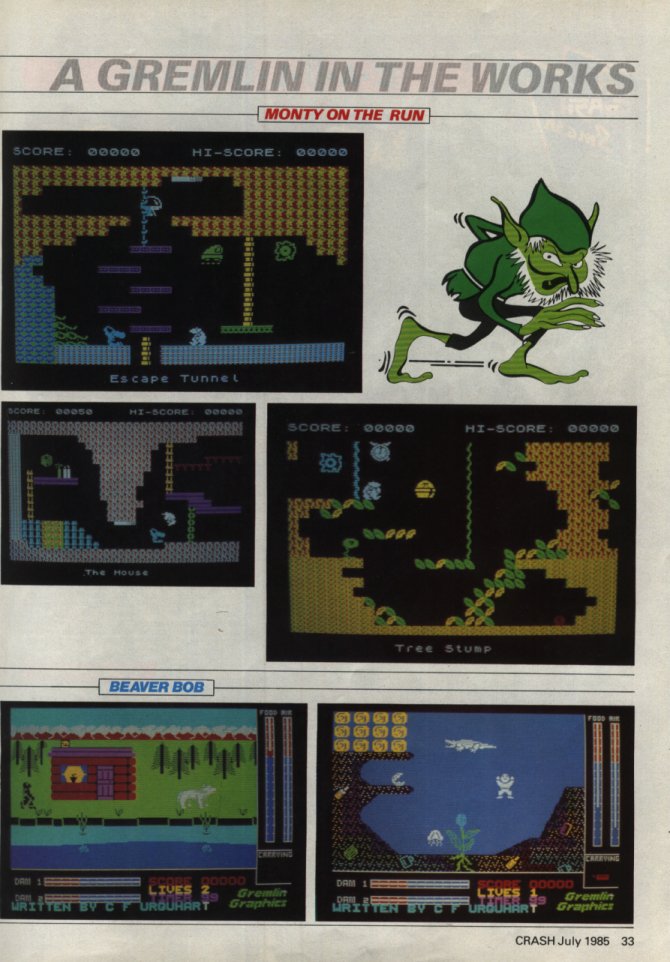 in-game screens were printed in CRASH! July '85: http://www.tzxvault.org/Spectrum/Images/AGremlinInTheWorksFeature.jpg